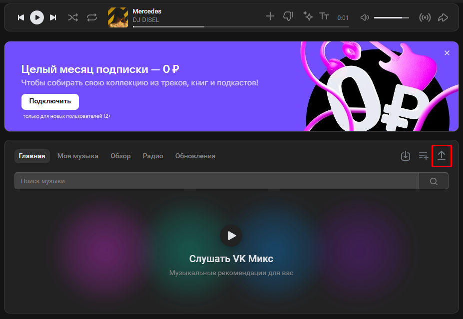 Вторым способом  вашу музыку можно загрузить напрямую через “ВКонтакте”